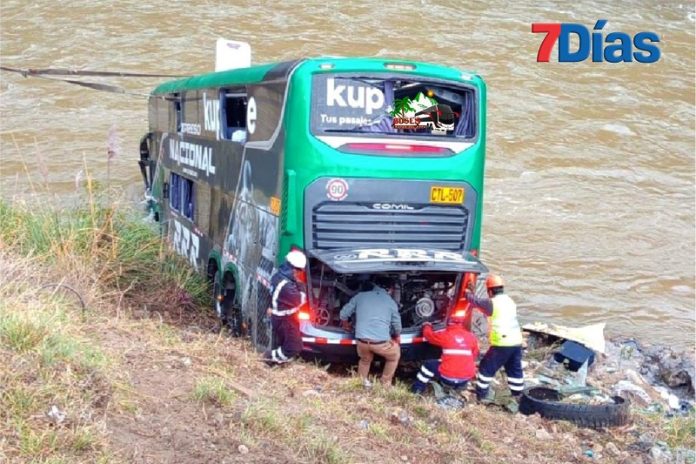El violento choque hizo que el conductor del bus perdiera el control de la unidad, que terminó despistándose y cayendo hacia el cauce del río Mantaro. La parte delantera del vehículo quedó semisumergida en las aguas turbulentas, mientras la parte posterior permaneció atrapada en la orilla, al borde de ser arrastrada por la corriente. La imagen del pesado vehículo casi dentro del río, sostenido apenas por el talud, refleja la magnitud del peligro que enfrentaron los ocupantes.