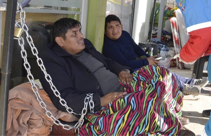 «Me sangraré y responsabilizaré de lo que me pase a los gerentes de administración y de planificación y presupuesto, y al alcalde. No es justo que me quieran pagar en partes», indicó Coarita, quien permanece aferrado a la cadena que está sujeta con un candidato a su brazo derecho desde el jueves 17 de julio.
