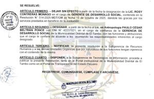El referido profesional se convierte en el funcionario 206 en toda la gestión de Julio César Llallico y en el octavo gerente de Desarrollo Social desde que el inicio de esta gestión, movidas que -a decir de expertos en temas administrativos y municipales- es la causa de la inestabilidad administrativa en esta municipalidad.