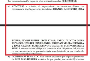 Por otro lado, el Primer Juzgado de Investigación Preparatoria admitió a trámite el requerimiento de acusación directa del Ministerio Público contra el burgomaestre huancaíno y sus cinco exfuncionarios, dictando comparecencia simple como medida para garantizar su presencia obligatoria en las diligencias del proceso, bajo apercibimiento de ser conducidos compulsivamente por la Policía.