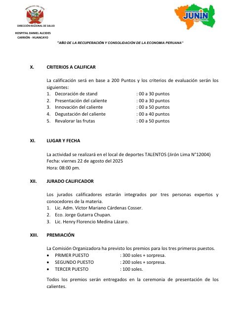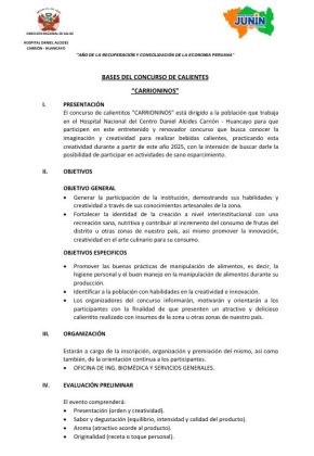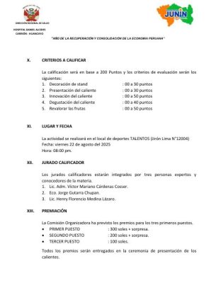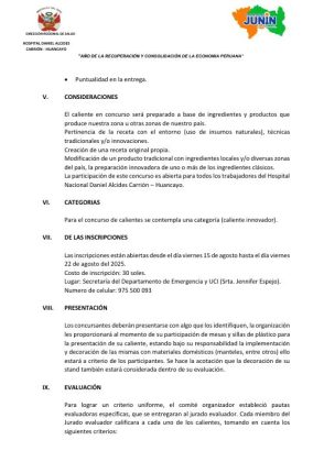 Luego de lograr el cambio de denominación, el ahora Hospital Nacional del Centro Daniel Alcides Carrión de Huancayo impulsa un concurso de preparación de ‘calientes’, entre sus trabajadores según señalan para fortalecer la identidad con una recreación sana, nutritiva y contribuir al incremento del consumo de frutas.