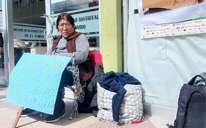 Emulando el caso Fredy Coarita, este martes 26 desde las 6:00 de la mañana, doña Rafaela Mallma, una mujer de 68 años, decidió encadenarse a la puerta principal de la Municipalidad Distrital de El Tambo como medida extrema de protesta, exigiendo el pago de 45 mil soles que le adeudan desde el 2023 por los servicios de reparación de maquinaria pesada prestados a la comuna.