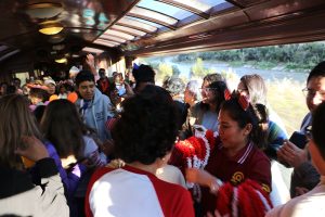 Durante el trayecto, los viajeros vivieron una verdadera «fiesta sobre rieles», con danzas tradicionales, música típica y la popular hora loca. A su llegada a Huancayo, fueron recibidos por la Dirección Regional de Comercio Exterior y Turismo de Junín, al ritmo de Santiago, danza representativa de la sierra central y que se disfruta en esta época del año; efectivos de la Policía de Turismo se sumaron a la celebración de bienvenida.